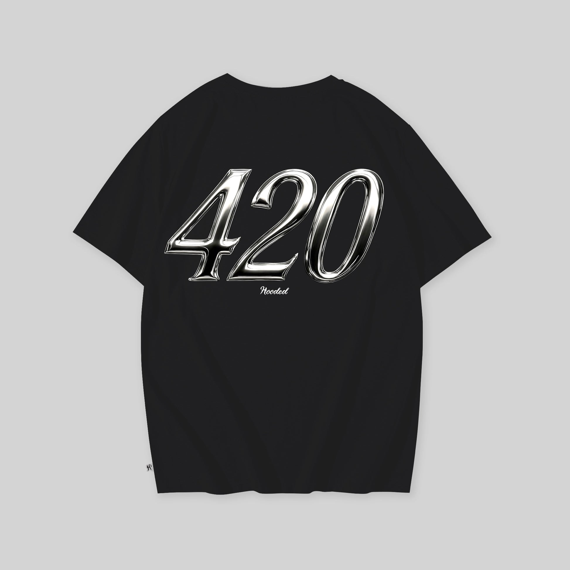Camiseta oversized en algodón peruano de 280 gramos, cuello el rib, estampado en serigrafia y apliques premium.