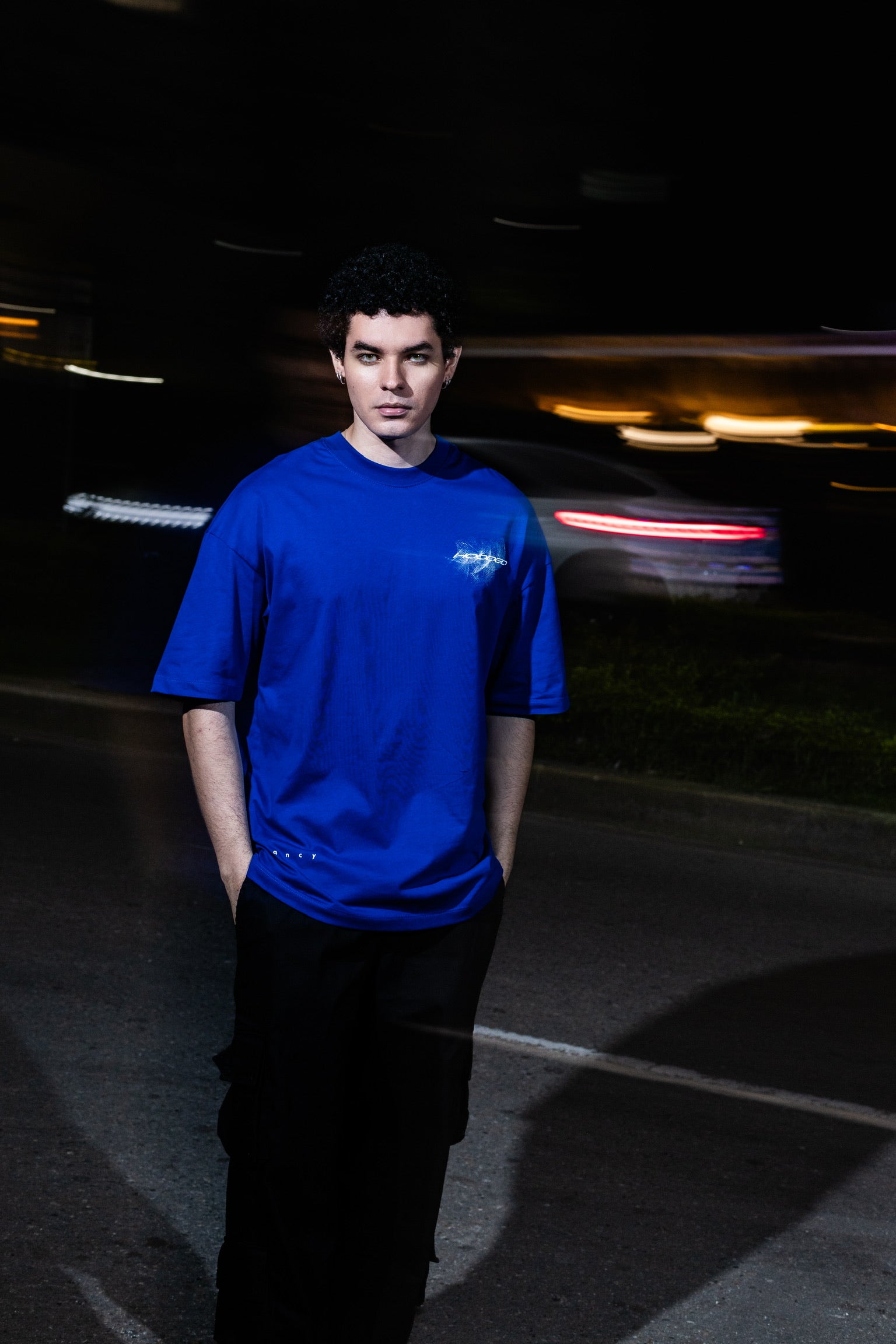 Camiseta oversized en algodón premium de 240gr, estampados en alta densidad, cuello en rib, aplique microinyectado