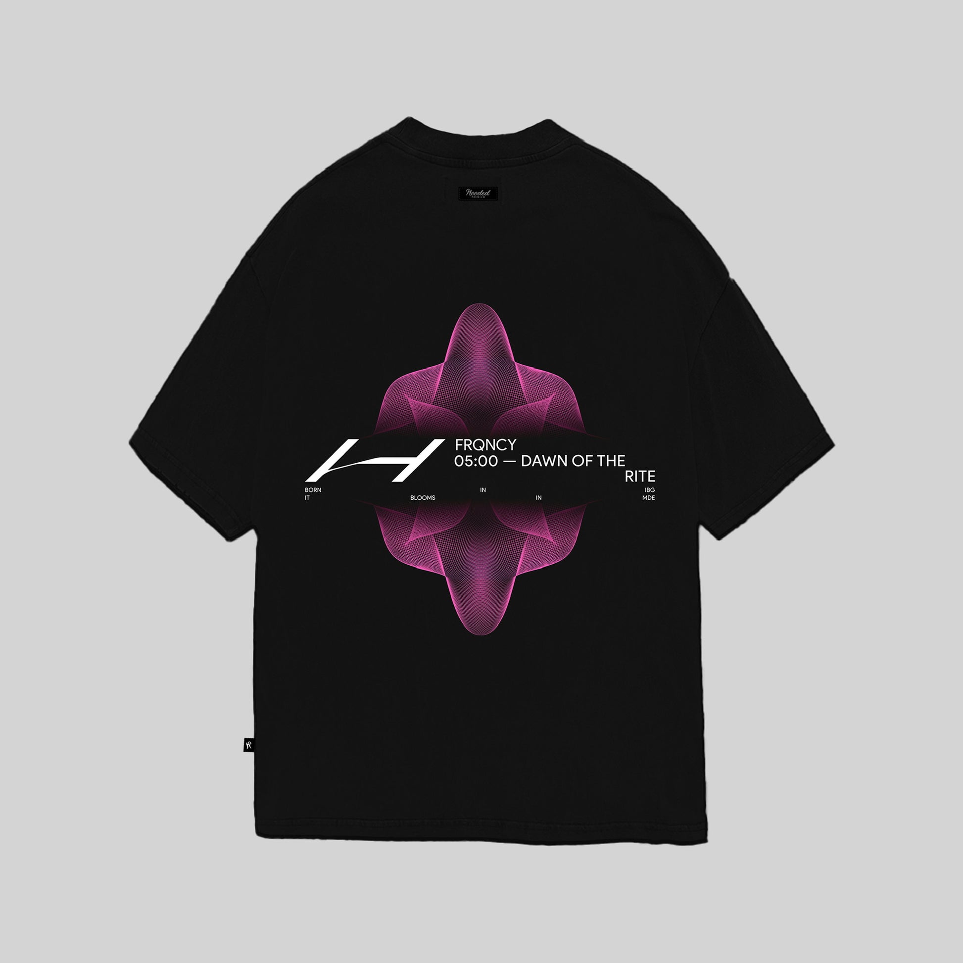 Camiseta oversized en algodón premium de 240gr, cuello ek rib, estampados en serigrafía y aplique microinyectado